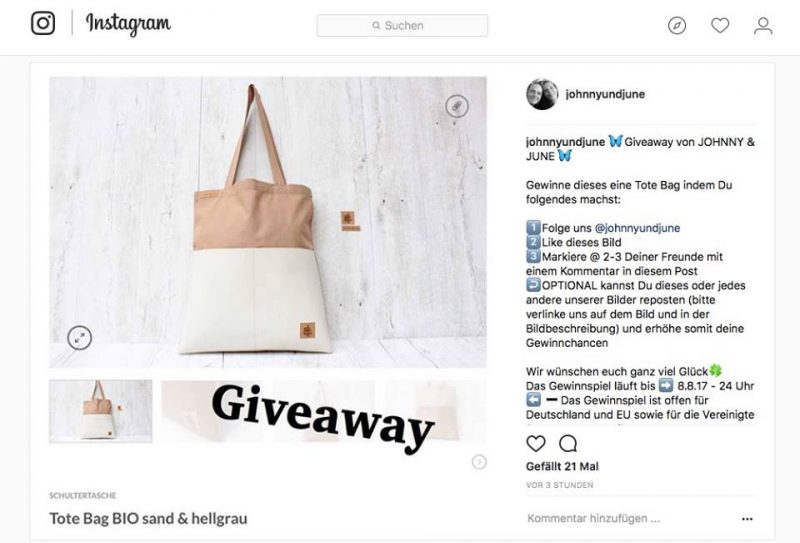 Giveaway von JOHNNY & JUNE bei INSTAGRAM