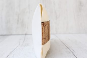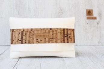Der Trageriemen aus Kork-Leder auf der Vorderfront der Clutch Kork weiß gestreift gibt Halt beim Tragen, ist ganz weich und sehr edel. Die Clutch kann durch den Kork-Riemen über die Hand gezogen werden oder ganz lässig unter die Achsel geklemmt werden. Praktisch und chic.