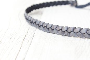 Haarband aus geflochtenem Leder und Jersey (dehnbar) in BLAU *antik.
