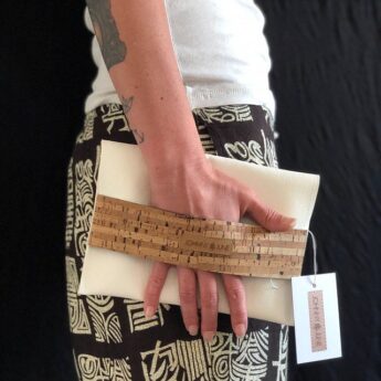Unsere Clutch Handtasche hat eine Breite von ca. 22 cm und eine Höhe von ca. 15 cm. Mit unserer Clutch kannst Du Dein Telefon, Dein Etui und weitere Kleinigkeiten chic verpackt mitnehmen. Der Trageriemen aus Korkleder auf der Vorderfront der Clutch gibt Halt beim Tragen, ist ganz weich und sehr edel. Die Clutch kann durch den Kork-Riemen über die Hand gezogen werden oder ganz lässig unter die Achsel geklemmt werden. Praktisch und chic.