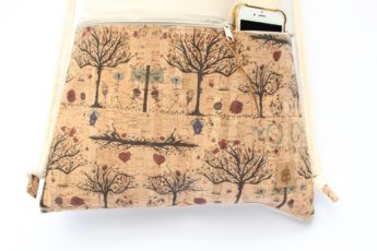 Rucksack Kork sand Bäume aus Baumwolle und einer Reißverschluss-Aussen-Tasche aus Korkleder.