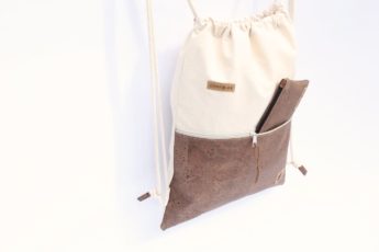 Der Rucksack wird oben mit einer Kordel geschlossen, daher kannst Du ihn einfach zuziehen und ganz leicht und schnell über die Schultern aufsetzen. Die Enden der Kordel haben wir mit dem Korkleder der Aussentasche versehen, damit diese nicht ausfransen. Das wertet den Rucksack optisch ebenfalls auf und macht ihn auch daher zu etwas Besonderem. Deshalb ist unser Rucksack nicht nur praktisch sondern auch ein absoluter Hingucker!