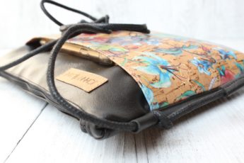 Die Umhängetasche mit Reißverschluss & Kork-Tasche auf der Vorderfront bietet Stauraum für diverse Kleinigkeiten. Griffbereit können in dem Außenfach aus Kork-Leder Kleinigkeiten wie Telefon „et cetera“ untergebracht werden. Die Kordel ist aus beschichteter Baumwolle und hat eine sehr schöne & edle Lederoptik. Die Kordelenden sind mit Applikationen aus dem Material der Tasche versehen, sodass die Kordel nicht ausfransen und nicht durchrutschen kann.
